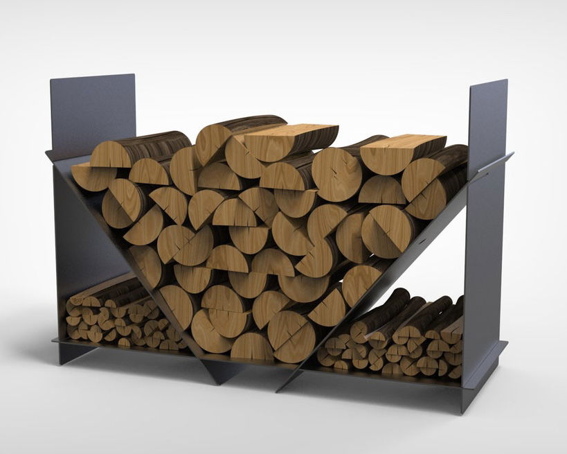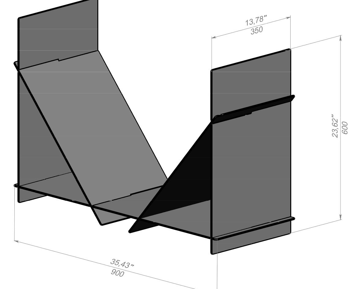Este leñero es ideal para organizar tu leña de forma practica y con estilo. Su estructura esta fabricada completamente en chapa de 1/8" de espesor (3,2mm), sin soldaduras ni tornillos: todas sus partes se ensamblan mediante un sistema de encastre preciso y resistente.
